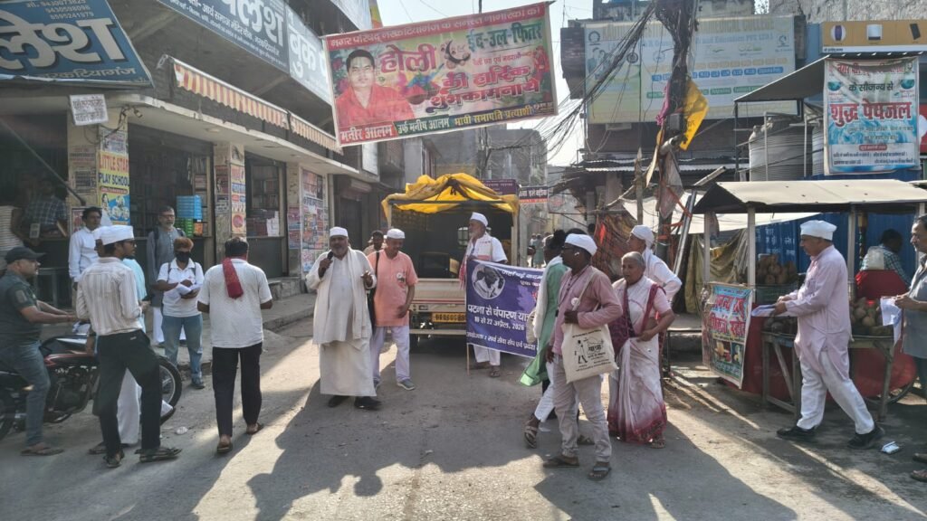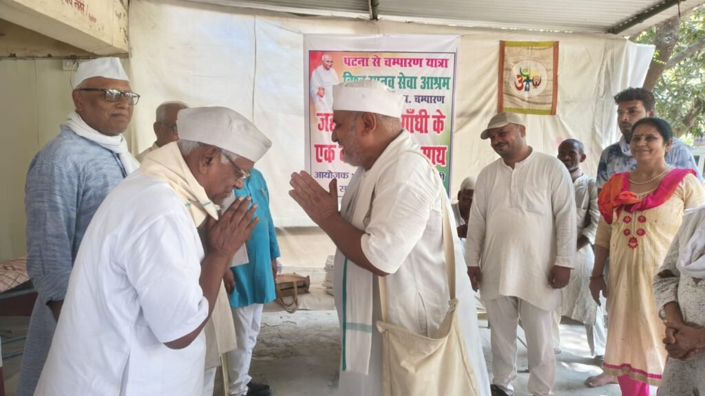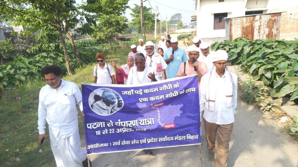 आजादी के आंदोलन की विरासत, सद्भावना, लोकतंत्र और संविधान के मूल्यों की रक्षा तथा उन्हें सुदृढ़ करने के उद्देश्य से “जहां पड़े कदम गांधी के -एक कदम गांधी के साथ” पटना से चंपारण यात्रा निकाली गई है। बारहवें दिन की शुरुआत पश्चिमी चंपारण के नरकटियागंज स्थित विश्व मानव सेवा आश्रम में सर्वधर्म प्रार्थना के साथ हुई। प्रार्थना के बाद यात्रा दल ने आश्रम के आसपास प्रभातफेरी निकाली। इस दौरान विभिन्न चौकों पर नुक्कड़ सभाएं आयोजित की गईं, जहां पर्चे भी बांटे गए। प्रभातफेरी से लौटने के बाद आश्रम के संस्थापक शत्रुघ्न झा ने यात्रा दल के सभी साथियों का खादी वस्त्र देकर स्वागत किया। इसके बाद यात्रा आगे बढ़ी।