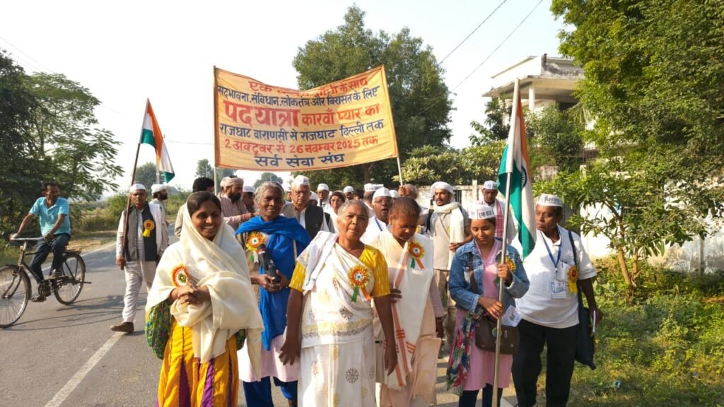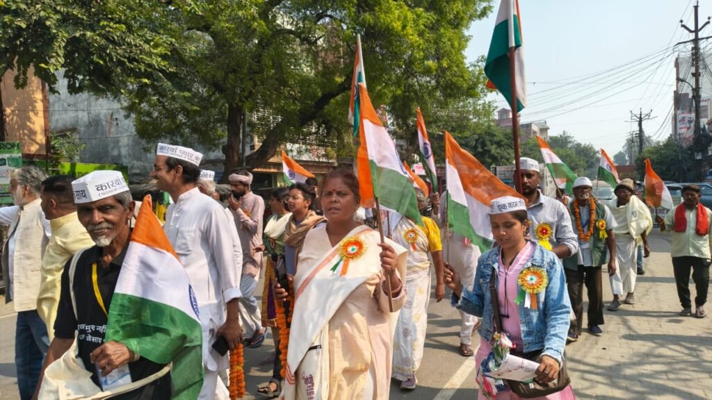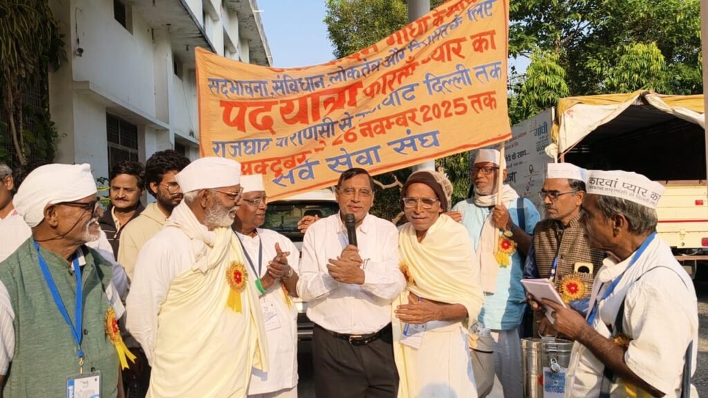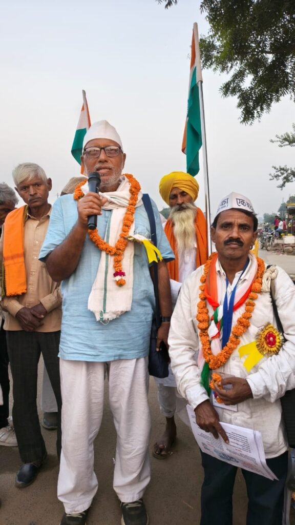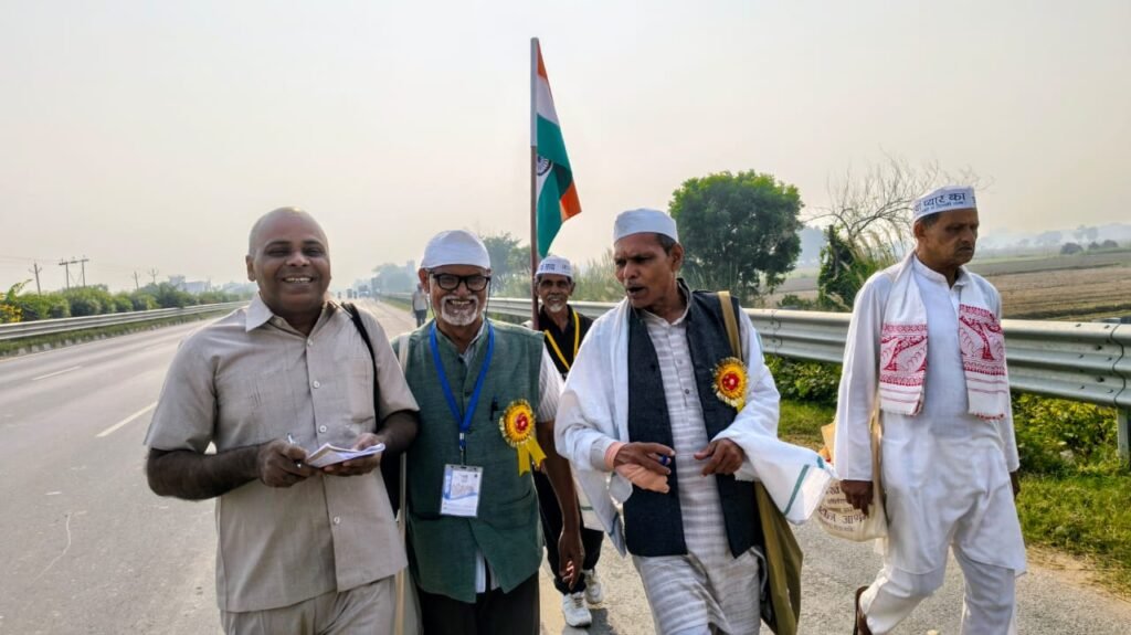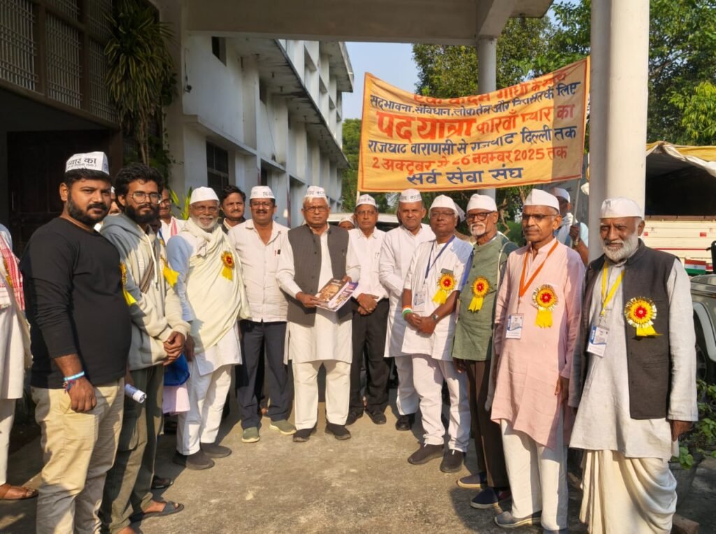 पदयात्रा के साथी सचिन द्वारा “जय जगत पुकारे जा” गीत प्रस्तुत किया गया। इसके बाद विद्याधर मास्टर ने कहा कि “यह दौर हवाई जहाज़ का है, लेकिन ऐसी कौन-सी वजह है जो देश के 19 प्रांतों के लोगों को 1000 किलोमीटर पैदल चलने को मजबूर कर रही है?” उन्होंने कहा कि संविधान लागू होने के बाद भले ही असमानता रही हो, लेकिन हर नागरिक भारत का मालिक बना। यदि लोकतंत्र में नागरिक भयभीत है, तो वह वास्तविक नागरिक कहलाने योग्य नहीं। लोकतंत्र की रक्षा हम सबको मिलकर करनी होगी, अन्यथा देश का भयावह रूप देखने को मिलेगा।