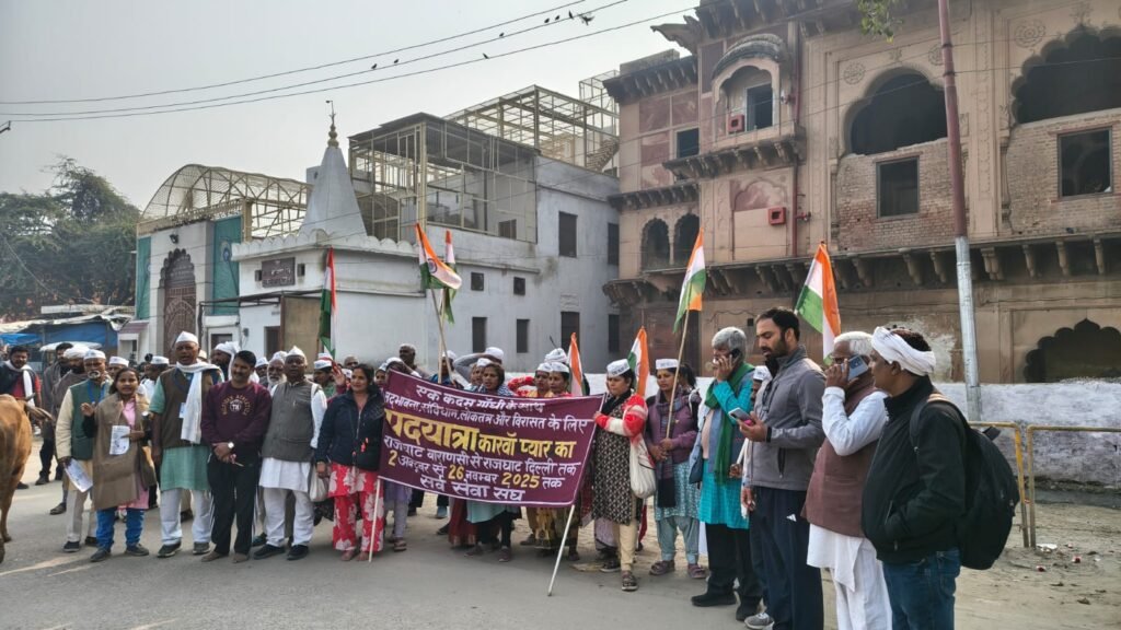 इसके बाद यात्रा यमुना घाट पहुँची, जहाँ नंदलाल मास्टर ने “नदी तू बहती रहना” गीत प्रस्तुत किया। सर्व सेवा संघ के मंत्री अरविंद कुशवाहा ने कहा कि वृंदावन और मथुरा की जीवनरेखा यमुना है और हमें इसे बचाना होगा। जिस तरह की सावधानी, सतर्कता और गंभीरता से संत, समाज और सरकार को यमुना के बारे में सोचना चाहिए था, उसमें ये तीनों पूर्णतः विफल रहे हैं। पंचमहाभूतों को संरक्षित करने की जिम्मेदारी इन्हीं तीनों की है। सरकार ने अपनी जिम्मेदारी पूरी नहीं की, और इसी कारण संत और समाज भी अपने दायित्व के प्रति उदासीन हो गए हैं।