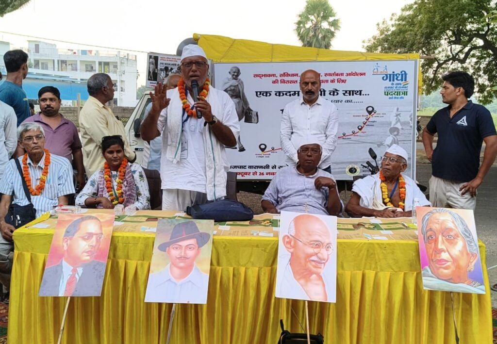 बंथरा में स्थानीय लोगों ने पदयात्रा का उत्साहपूर्वक स्वागत किया। स्वागत समारोह को संबोधित करते हुए सर्व सेवा संघ के अध्यक्ष श्री चंदन पाल ने कहा कि “देश के सामने अनेक प्रकार की चुनौतियाँ हैं और लोकतंत्र तथा संविधान खतरे में हैं। संविधान को तोड़ने-मरोड़ने की कोशिशें की जा रही हैं। 2024 के लोकसभा चुनाव के समय संविधान बदलने की बातें जोर-शोर से की गईं, लेकिन जनता ने सरकार के इरादों पर पानी फेर दिया।” उन्होंने आगे कहा कि “देश के युवा बड़ी संख्या में बेरोजगार हैं और उनका भविष्य अनिश्चित है। सरकार के पास रोजगार की कोई ठोस योजना नहीं है। स्थानीय स्तर पर रोजगार न मिलने के कारण लोग अपने क्षेत्रों से पलायन करने को मजबूर हैं। बेरोजगारी का समाधान तभी संभव है जब एक न्यायसंगत, समानतामूलक अर्थव्यवस्था का निर्माण किया जाए।” उन्होंने आगे  कहा कि “यह पदयात्रा संविधान, सद्भाव, लोकतंत्र और विरासत की रक्षा के लिए है। यद्यपि इस यात्रा का आयोजन सर्व सेवा संघ ने किया है, परंतु यह कार्यक्रम पूरे समाज का है।”