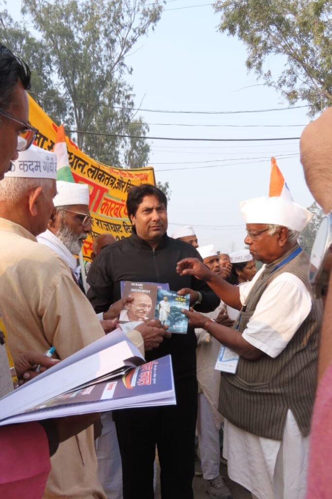 2 अक्टूबर को राजघाट, बनारस से संविधान, लोकतंत्र, सद्भावना और बंधुत्व का संदेश लेकर आरम्भ हुई ‘एक कदम गांधी के साथ’ पदयात्रा अपने 53वें दिन आर्य समाज मंदिर औरंगाबाद से आगे बढ़कर चौराहे पर रुकी। यहां स्थानीय आयोजक फिरेज सिंह पोसवाल, जनरल सेक्रेटरी हरियाणा कांग्रेस, तथा औरंगाबाद के सरपंच राजू चौहान को गांधी की आत्मकथा सत्य के साथ मेरे प्रयोग और अन्य गांधी साहित्य भेंट किया गया। यात्रा गीतों और नारों के साथ आगे बढ़ी।