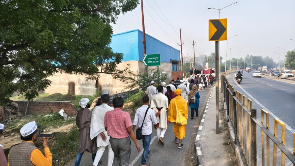 छलेसर आगरा में राज्यसभा सांसद रामजी लाल सुमन ने पदयात्रा का स्वागत किया। रात में पदयात्रा गांधी आश्रम मोती बाग कुबेरपुर आगरा पहुंची। यह ऐतिहासिक स्थान है जहां महात्मा गांधी ने 11 दिन प्रवास किया था। यहाँ सर्वधर्म प्रार्थना आयोजित की गई। कार्यक्रम में उपस्थित सांसद रामजी लाल सुमन ने कहा कि यह पदयात्रा ऐतिहासिक है और गांधी विचारों को आगे बढ़ाने में अग्रणी भूमिका निभा रही है।