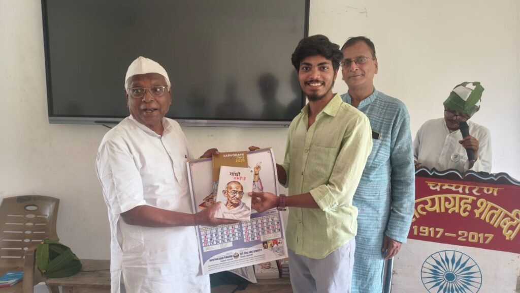 समापन सत्र के अंत में पटना से चंपारण तक की यात्रा में शामिल यात्रियों को ‘गांधी जरूरी है’ पुस्तक, सर्वोदय डायरी और कस्तूरबा कैलेंडर स्मृति-स्वरूप भेंट किए गए।