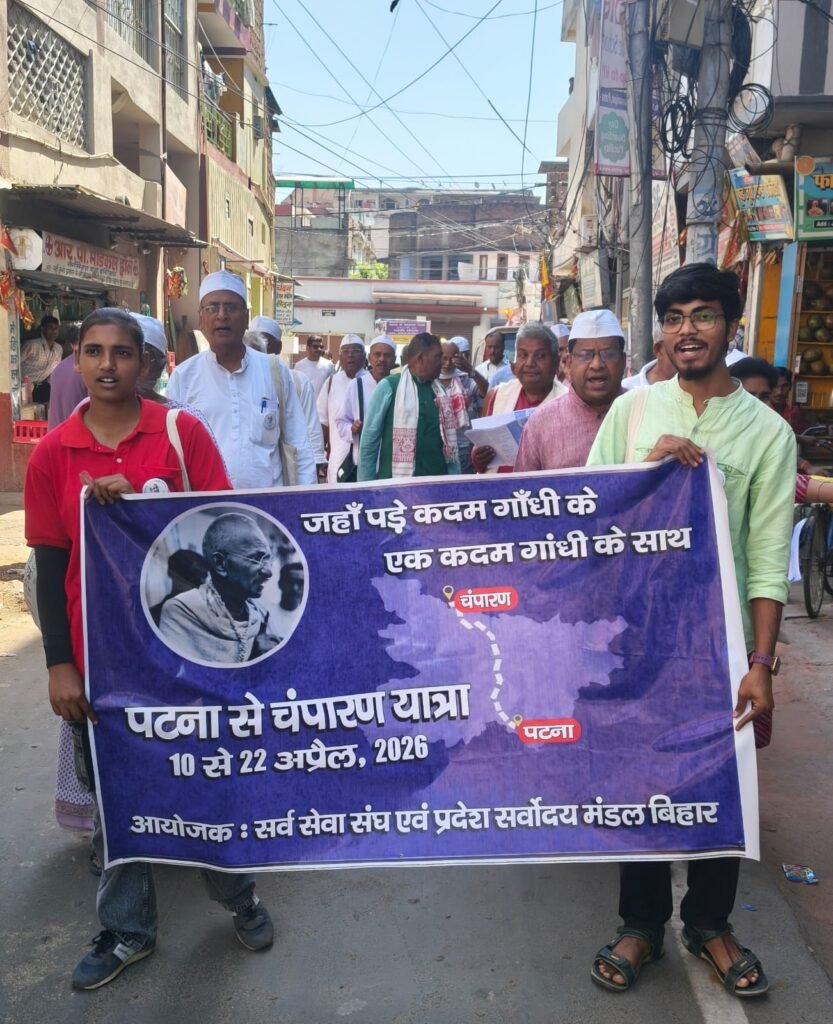उत्तर प्रदेश सर्वोदय मंडल के अध्यक्ष रामधीरज ने कहा कि अहिंसा की ताकत से चंपारण में लाखों लोग खड़े हुए। आज फिर लोकतंत्र, आम आदमी, विरासत और संस्थाओं पर खतरा है। जो भी सत्ता के खिलाफ लिखेगा या बोलेगा, उसे दरकिनार करने की कोशिश होगी। ऐसे समय में हर देशवासी को निर्भय होकर अपने अधिकारों और लोकतंत्र की रक्षा करनी चाहिए।