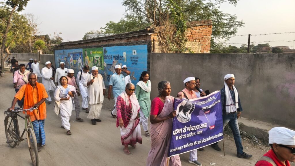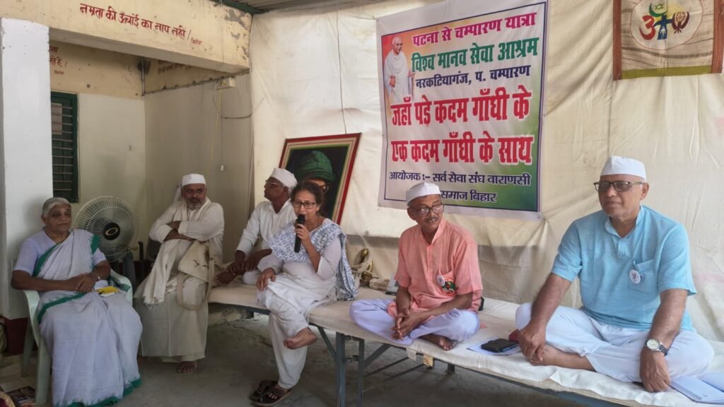 आजादी के आंदोलन की विरासत, सद्भावना, लोकतंत्र और संविधान के मूल्यों की रक्षा और उन्हें मजबूत करने के उद्देश्य से “जहां पड़े कदम गांधी के – एक कदम गांधी के साथ” पटना से चंपारण यात्रा निकाली गई है । ग्यारहवें दिन की शुरुआत पश्चिमी चंपारण के नरकटियागंज स्थित विश्व मानव सेवा आश्रम में में सर्व धर्म प्रार्थना के साथ हुई।