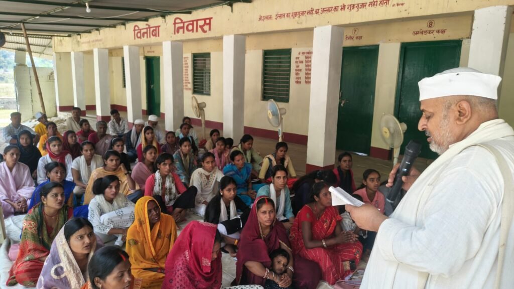 सर्व सेवा संघ के मंत्री एवं यात्रा दल के सदस्य अरविंद अंजुम ने मौजूदा शिक्षा व्यवस्था के संकट और गांधी की बुनियादी शिक्षा (नई तालीम ) की प्रासंगिकता पर विस्तार से प्रकाश डालते हुए कहा कि जीवन का वास्तविक अर्थ केवल संपत्ति, घर या जमीन इकट्ठा करने में नहीं है, बल्कि वह लाभ महत्वपूर्ण है जो जीवन को बेहतर और सार्थक बनाता है। विनोबा भावे के अनुसार, बचपन विशेषकर चार साल तक की उम्र सीखने की सबसे प्रबल अवस्था होती है, जब बच्चे गहरी एकाग्रता से चीज़ों को समझते हैं; लेकिन उम्र बढ़ने के साथ यह क्षमता धीरे-धीरे कम होने लगती है। वर्तमान शिक्षा प्रणाली में कई खामियाँ हैं, जहाँ छात्र अचानक जिम्मेदारियों के बोझ में आ जाते हैं और अक्सर बिना वास्तविक रुचि के केवल नौकरी के लिए उच्च शिक्षा प्राप्त करते हैं। इस स्थिति को सुधारने के लिए प्रायोगिक ज्ञान को प्राथमिकता देना आवश्यक है जैसे इंजीनियर बनने से पहले मैकेनिक और डॉक्टर बनने से पहले कंपाउंडर का अनुभव लेना ताकि शिक्षा व्यवहारिक और उपयोगी बन सके। भारत में शिक्षा की एक बड़ी समस्या यह भी रही है कि मेहनत और ज्ञान को अलग कर दिया गया है, जबकि दोनों का मेल ही शिक्षा को उत्पादक और सृजनशील बनाता है। महात्मा गांधी की बुनियादी शिक्षा का सिद्धांत ‘करके सीखना’ इसी विचार को मजबूत करता है कि बिना काम किए वास्तविक सीख संभव नहीं है। गांधी और विनोबा ने एक ऐसे आदर्श समाज की कल्पना की जो प्रेम, करुणा, बंधुत्व और समानता पर आधारित हो । सकारात्मक मानवीय संकल्प लेने से ही बदलाव संभव होता है, जैसा कि अरबी वाक्यांश ‘कुन फया कुन’ का संदेश है- जो हम सोचते हैं, वह हो जाता है।