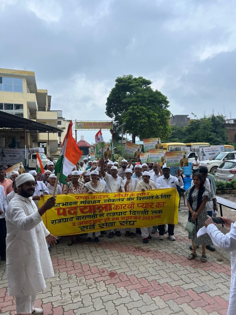 बनारस: सरस्वती महिला पीजी कॉलेज, बनारस में रात्रि विश्राम के बाद पदयात्री सुबह 8 बजे अगले पड़ाव नागेपुर के लिए रवाना हुए। 16 राज्यों से आए करीब 100 पदयात्री गीतों और नारों के साथ आगे बढ़े। हाइवे पर चलते हुए उन्होंने पदयात्रा के पर्चे भी बांटे और यात्रा के उद्देश्यों की विस्तृत जानकारी लोगों को दी।