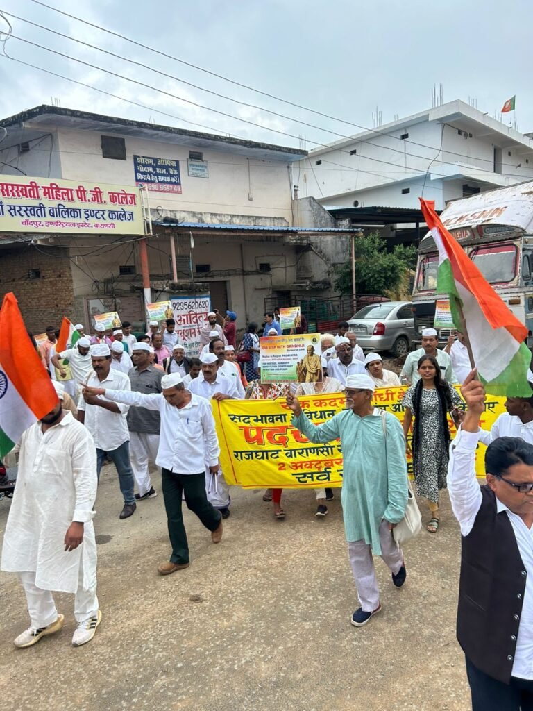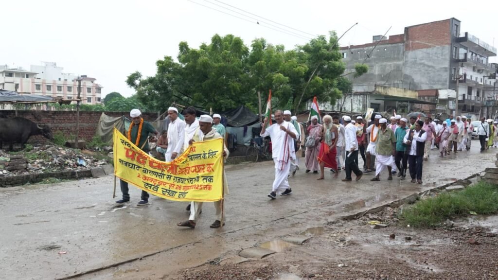 सुबह से ही मूसलाधार बारिश हो रही थी, लेकिन पदयात्रियों के मनोबल में कोई कमी नहीं दिखी। भीगते हुए भी वे निरंतर आगे बढ़ते रहे। दोपहर 12 बजे पदयात्री रोहनिया चौक पहुंचे, जहां स्थानीय लोगों ने उनका भव्य स्वागत किया। रोहनिया चौक में ही मशहूर गांधी चबूतरा था, इसे सरकार ने सड़क विस्तारीकरण के नाम पर तोड़ा दिया था और अभी तक उसे बनाया नहीं गया।