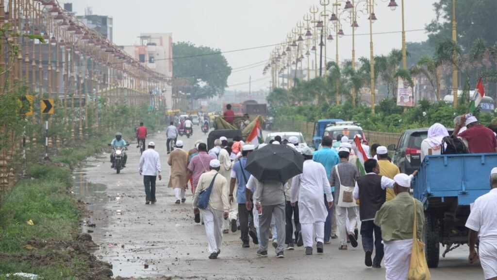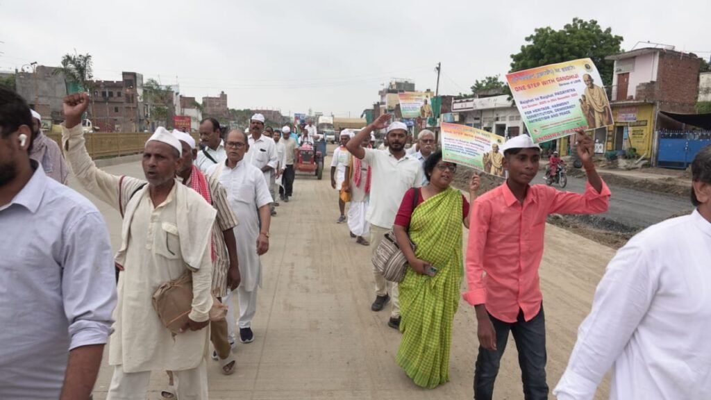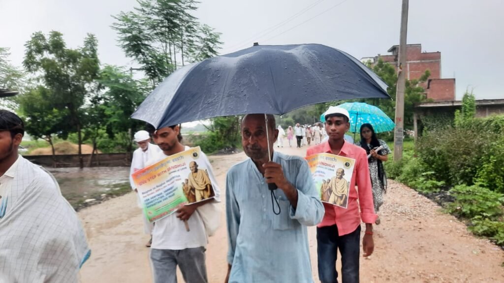 तेज बरिश के बावजूद भींगते हुए आगे बढ़ते रहे पदयात्री – एक कदम गांधी के साथ : पदयात्रा का दूसरा दिन